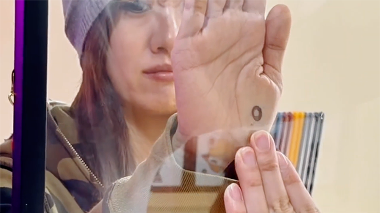 You draw a mark on a piece of glass. A spectator holds their hand on the other side. You cover the mark with your palm. And then, right in front of everyone, the mark passes through the glass and appears on the spectator's hand.