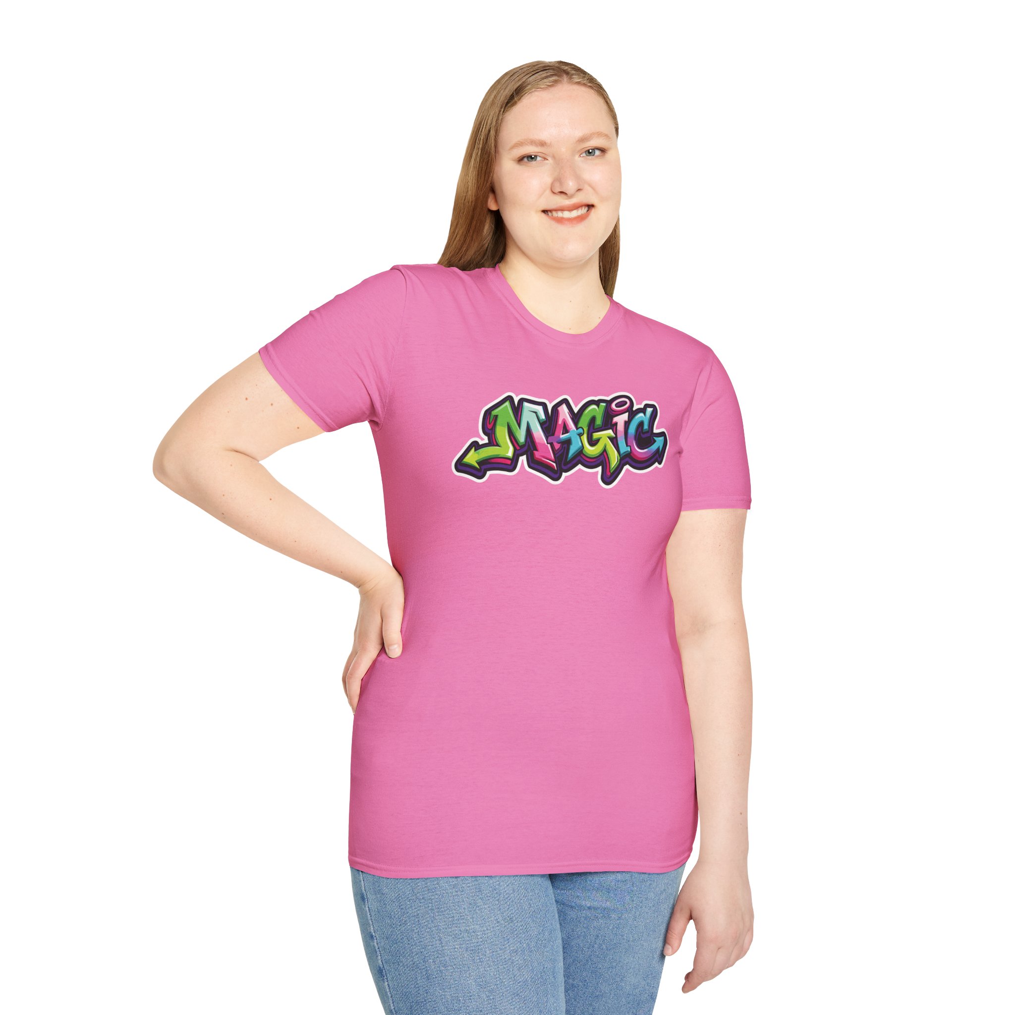 Our Magic Graffiti T-Shirt brings bold, colorful street art energy to your everyday wardrobe. Featuring the word "Magic" in vibrant graffiti-style lettering, this design captures the rebellious creativity and artistic expression that defines modern magic performance.