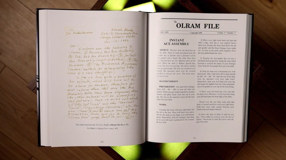 Opening The Olram File feels like sitting at the table with Marlo himself. The original correspondence, handwritten notes, and pre-illustration shots transport you back to the golden age of card magic innovation. Jon Racherbaumer's foreword and commentary add layers of insight, and Steve Reynolds' careful curation makes this feel like a museum-quality presentation of important magical history.